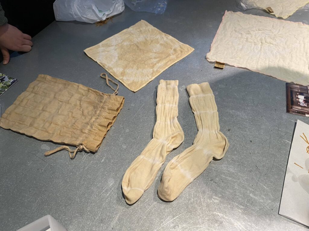 参加者は、自身の作品の変化を楽しみながら、草木染めならではの特徴や魅力を体感している様子でした。日常で使用しているアイテムが新たな形に生まれ変わる体験は、多くの方にとって印象に残るものとなりました。